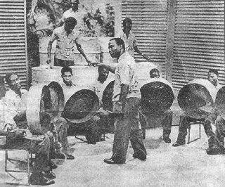 Who was the first band leader to portray African mas? Who was the first band leader to have a choreographed dance on the stage. Whatever you guessed, you’re wrong. It was the Antoine family. Many, many years ago (no one can remember the year), the Antoine family had a carnival band with a presentation called, Cojo Billy. We were dressed as Africans, new drums were made, a song was composed and choreography was done. We practiced in the tent for weeks and finally took our presentation to the stage. Great fun was had by all, but it was never repeated. Who’s ready to resurrect Cojo Billy for 2012 carnival?